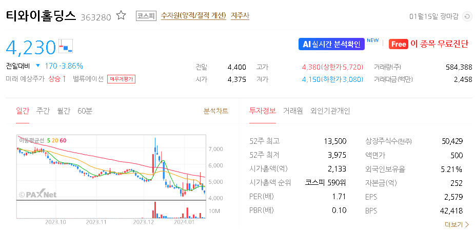 티와이홀딩스 주식 결론