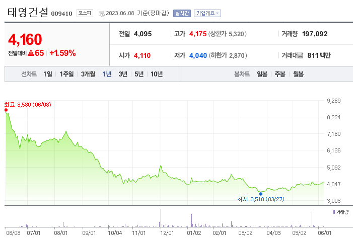 태영건설 주가 전망 현황과 주식에서 기업 순위