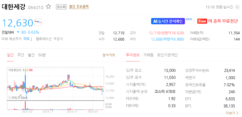 대한제강 주가 분석