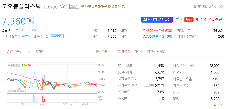 코오롱플라스틱 주가 분석