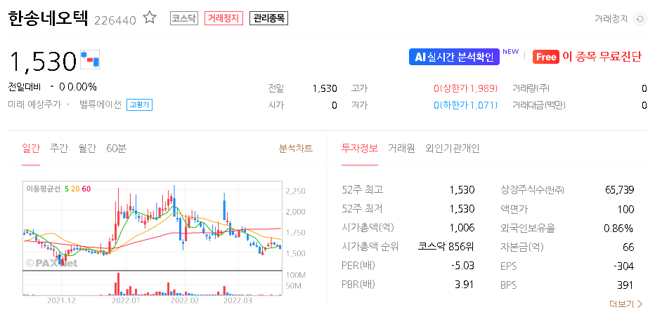 한송네오텍 주식 결론