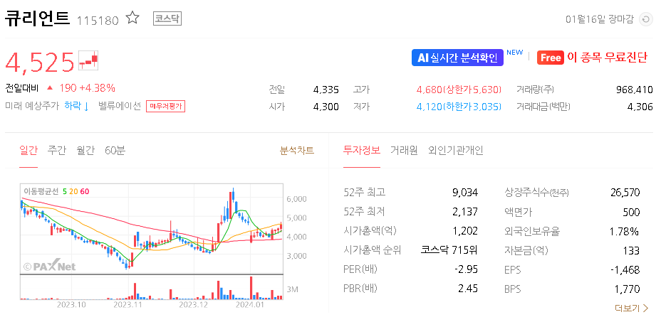 | 큐에스아이 주가 전망 목표주가 2024년 투자 전망 (0) | 2024.01.16 |
