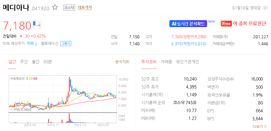 메디아나 주가 분석
