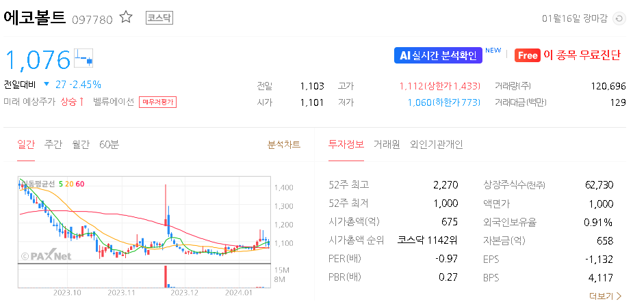 에코볼트 주가 예측 2023 투자 전략을 고민하다