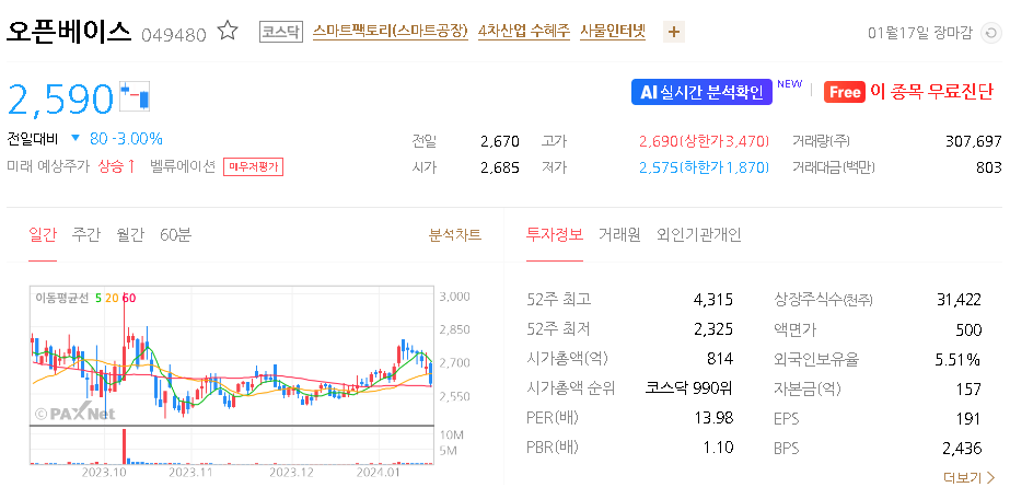 오픈베이스 주가 분석