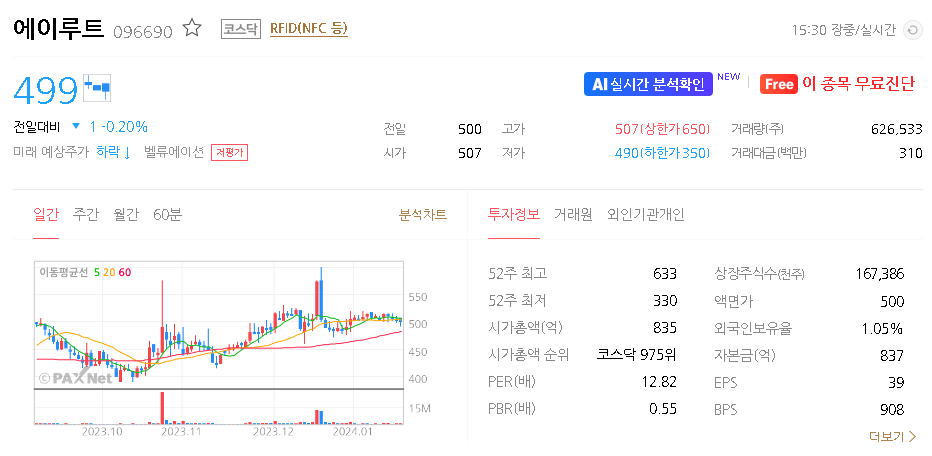 에이루트 주가 분석