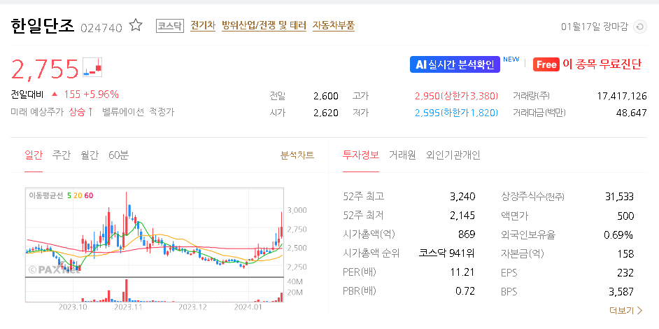 한일단조 주가 분석