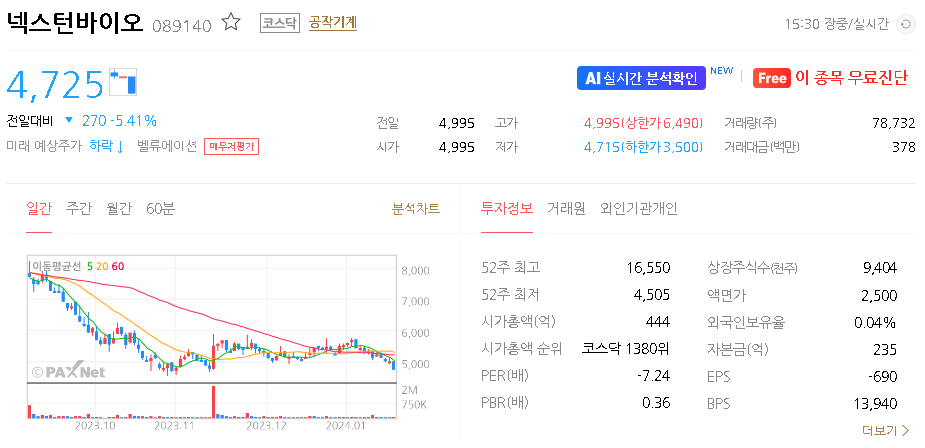 넥스턴바이오 주가 분석