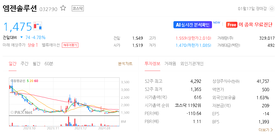 엠젠솔루션 주가 분석