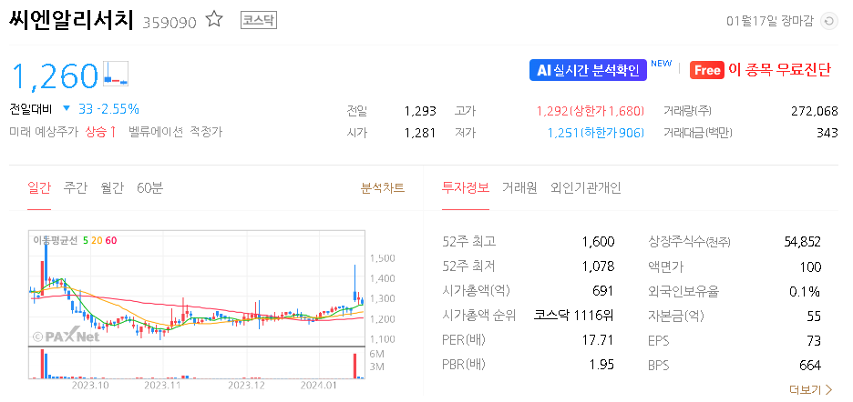 씨엔알리서치 주식 결론