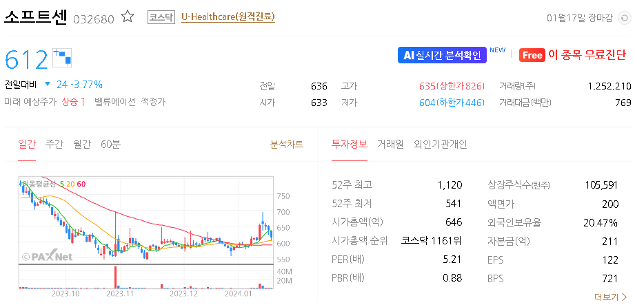 소프트센 주가 분석