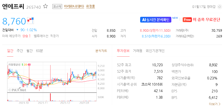엔에프씨 주가 분석