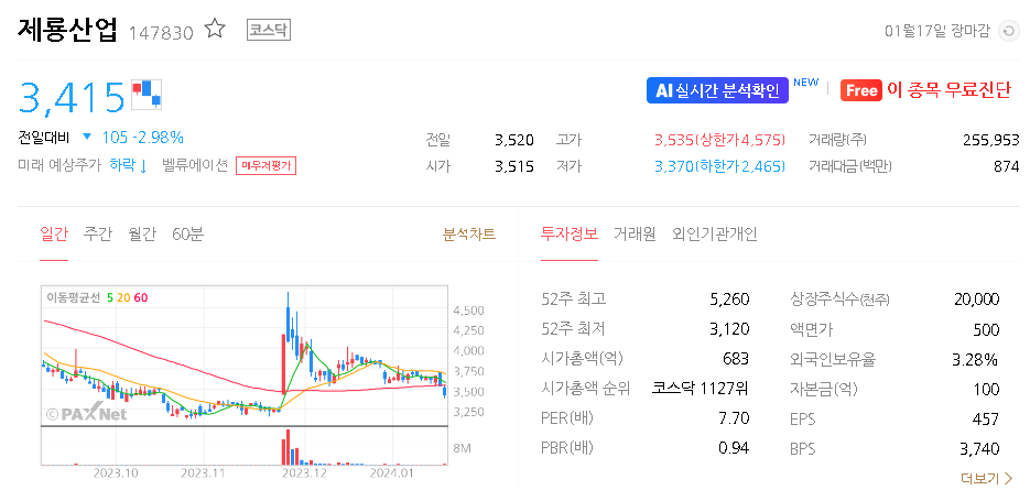 제룡산업 주가 분석