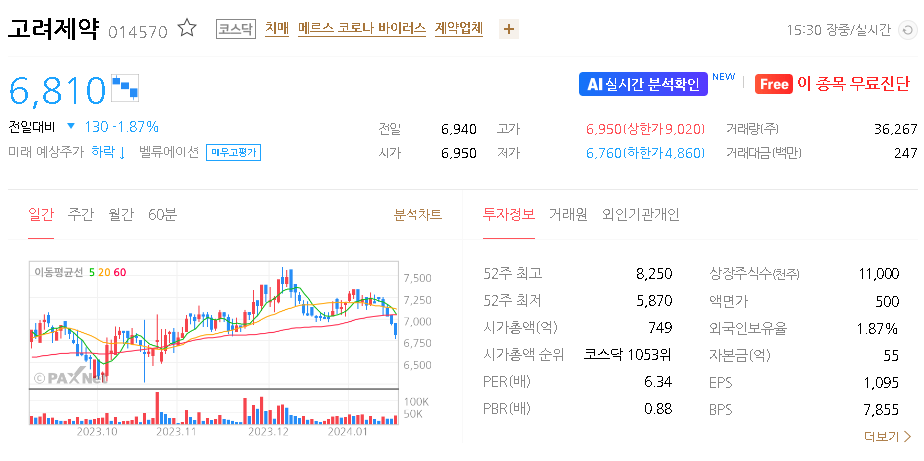 고려제약 주식 결론