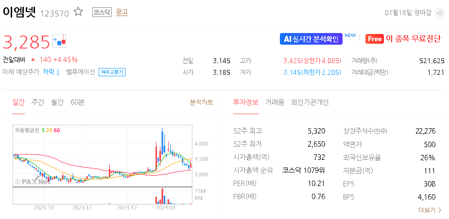 이엠넷 주가 분석