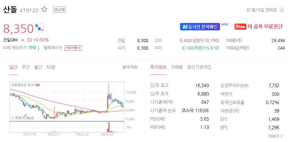 이 글에서는 산돌 주가 전망과 목표 주가, 기업 정보에 대해서 설명합니다. 주식 시장에서 중요한 것은 미래의 기업 가치를 예측하고 선제적으로 움직이는 것입니다. 투자 대상을 선택하기 전에 현재 기업의 현황과 데이터를 확인하는 것이 필요합니다. 산돌 주식의 주요 현황과 투자 정보를 확인하시고 주식 투자에 도움을 줄 자료들을 모아 두었으니 투자에 도움을 받으시길 바랍니다.