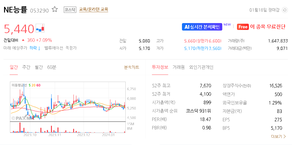 NE능률 주식 결론