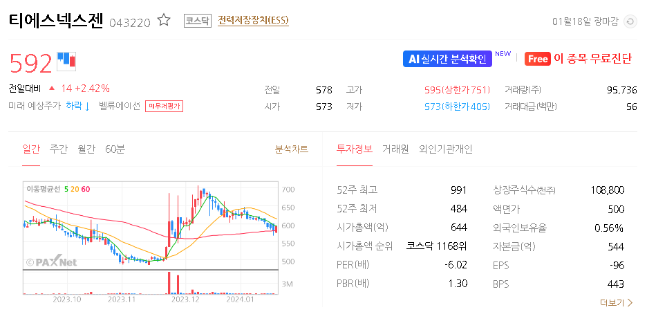 티에스넥스젠 주가 분석