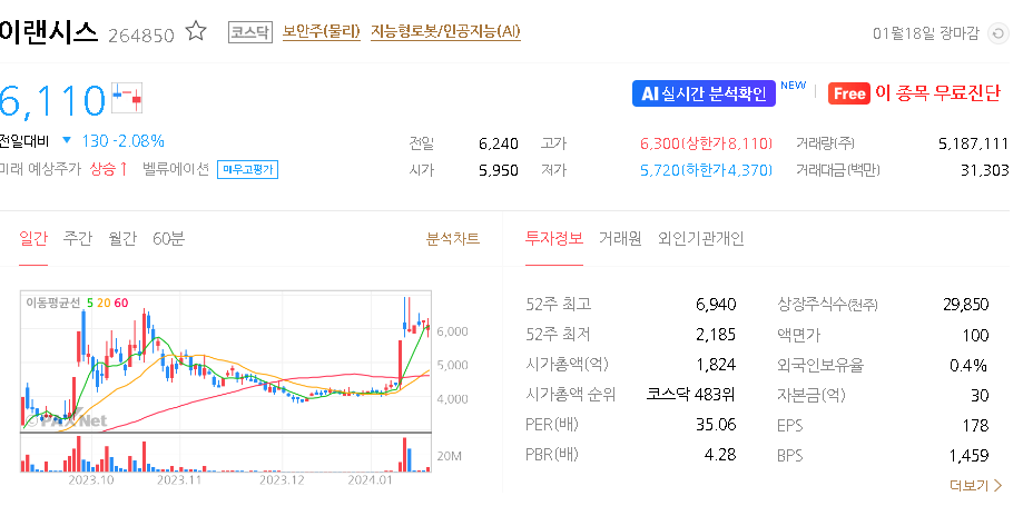 이랜시스 주가 분석