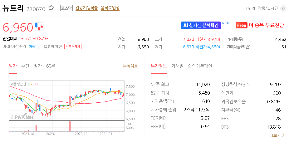 뉴트리 주가 분석
