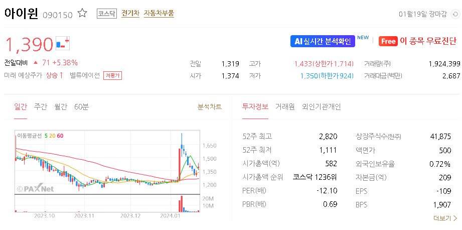 아이윈 주가 분석