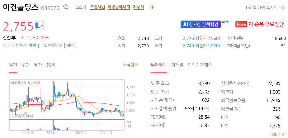이건홀딩스 주가 분석