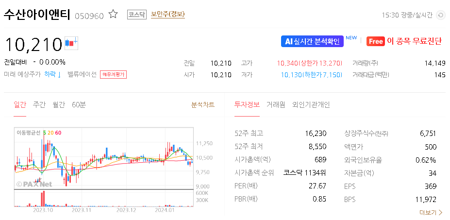 수산아이앤티 주가 분석