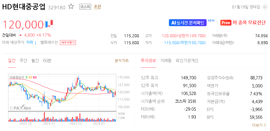 HD현대중공업 주가 분석