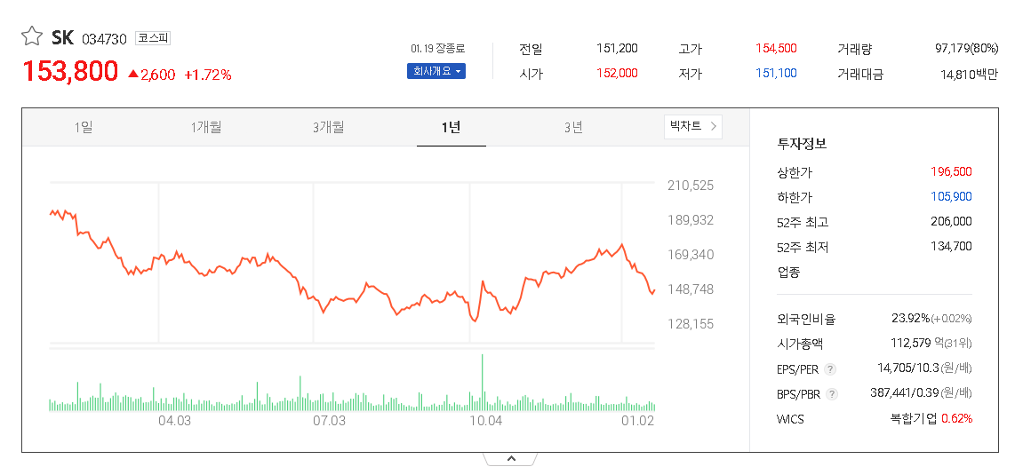 SK 주가 분석
