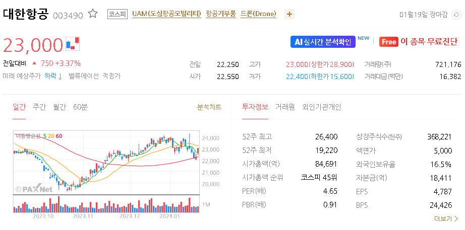 대한항공 주가 분석