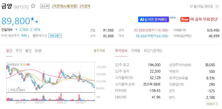 금양 주가 분석