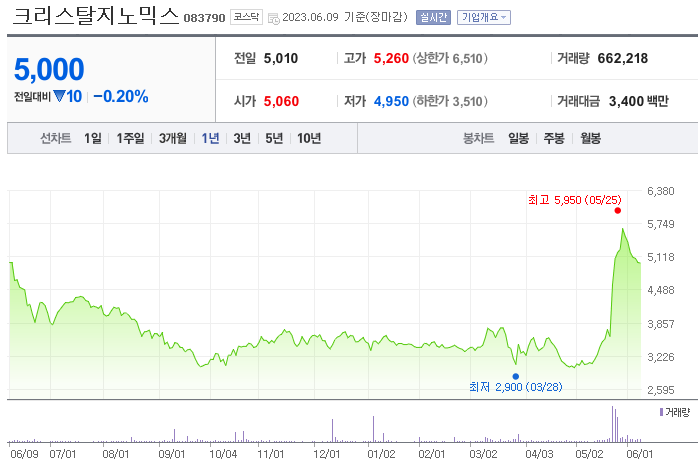 크리스탈지노믹스 주가 전망 상태 시장 흐름 분석