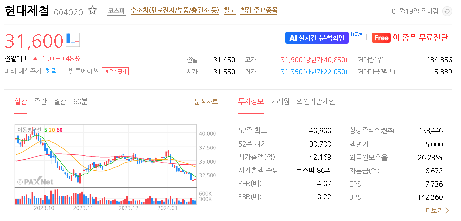 이 글에서는 현대제철 주가 전망과 목표 주가, 기업 정보에 대해서 설명합니다. 주식 투자에서 핵심은 미래의 기업 가치를 예상하고 선제적으로 움직이는 것입니다. 투자 대상을 결정하기 전에 현재 기업의 현황과 수치를 검토하는 것이 필요합니다. 현대제철 주식의 주요 현황과 투자 정보를 확인하시고 주식 투자에 유용한 자료들을 정리하여 제공하오니 효율적인 투자를 해보세요.