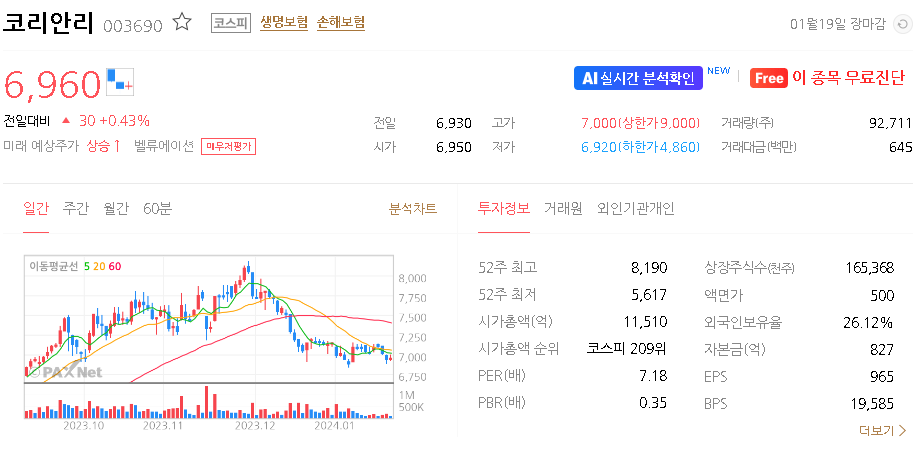 코리안리 가치 분석