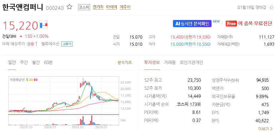 한국앤컴퍼니 주가 분석