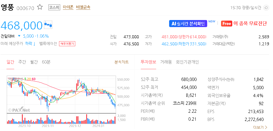 영풍 가치 분석