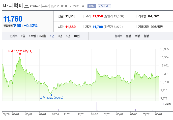 이 글에서는 바디텍메드 주가 전망과 목표 주가, 기업 정보에 대해서 설명합니다. 주식을 사기 전에 기업 정보를 확인하고 주가 정보에 대해 살펴보는 것이 굉장히 중요합니다. 바디텍메드 주식의 주요 현황과 투자 정보를 확인하시고 주가 흐름을 파악해 보겠습니다.