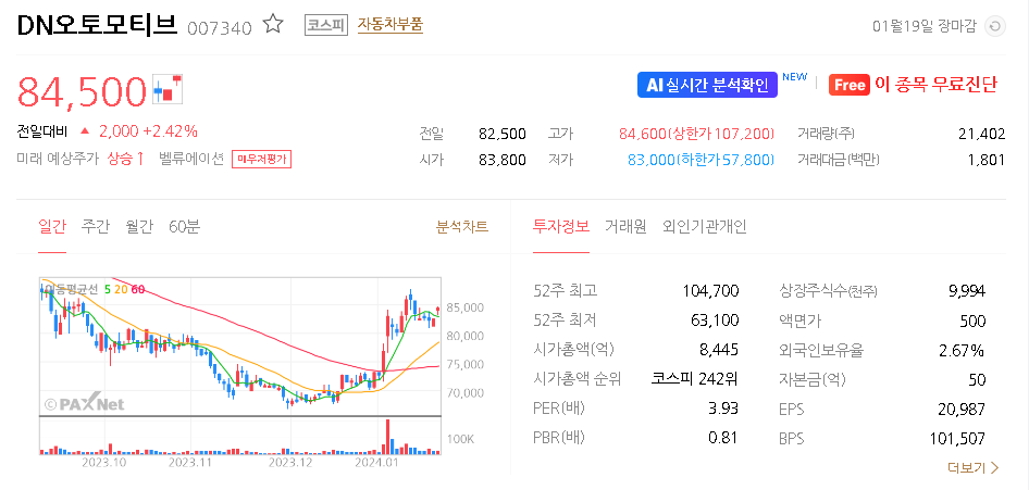 이 글에서는 DN오토모티브 주가 전망과 목표 주가, 기업 정보에 대해서 설명합니다. 주식 투자의 중심은 미래의 기업 가치를 예측하고 선제적으로 움직이는 것입니다. 투자할 종목을 고르기 전에 현재 기업 상태와 지표를 살펴야 합니다. DN오토모티브 주식의 주요 현황과 투자 정보를 확인하시고 주식 투자에 도움이 되는 자료를 모아두었으니 참고하셔서 투자에 도움을 받으시길 바랍니다.