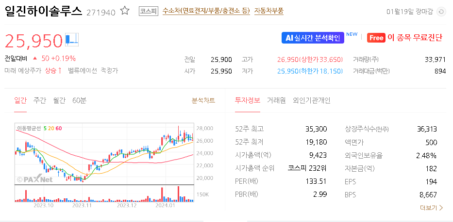 일진하이솔루스 주가 분석
