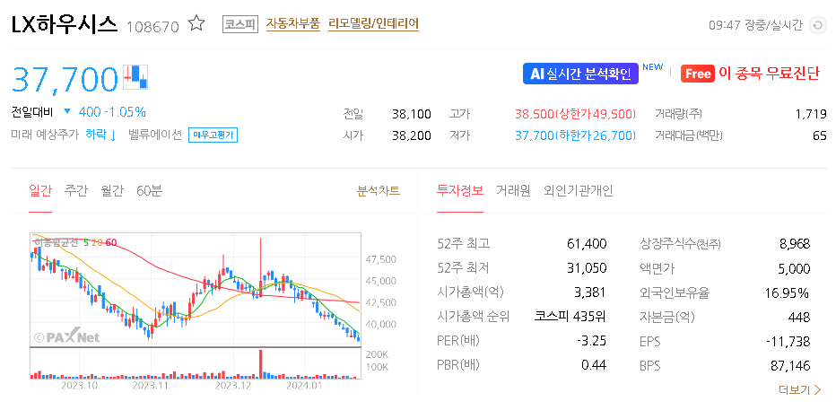LX하우시스 주가 전망과 글로벌 경기 불안