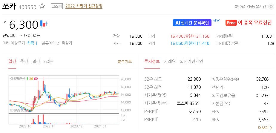 이 글에서는 쏘카 주가 전망과 목표 주가, 기업 정보에 대해서 설명합니다. 주식 투자의 핵심은 현재의 기업 가치보다는 미래의 가치를 예측하며 먼저 대응하는 것입니다. 투자 대상을 결정하기 위해 먼저 현재 기업 상태와 수치를 검토해야 합니다. 쏘카 주식의 주요 현황과 투자 정보를 확인하시고 주식 투자를 고려하고 계신다면 유용한 정보들을 모아 놓은 자료를 확인해보세요.