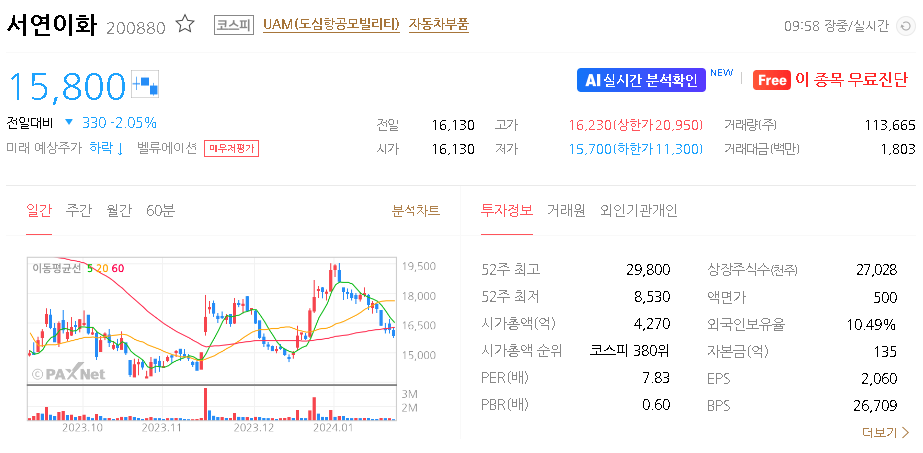 서연이화 주가 분석