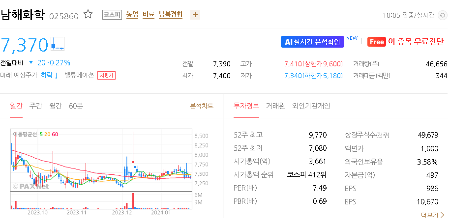 남해화학 주가 분석