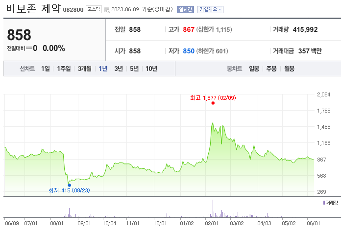 이 글에서는 비보존 제약 주가 전망과 목표 주가, 기업 정보에 대해서 설명합니다. 주식을 시작하기 위해서는 기업의 상태와 주가 정보에 대해서 분석하는 것이 필요합니다. 비보존 제약 주식의 주요 현황과 투자 정보를 확인하시고 주가 흐름을 정리해 보겠습니다.