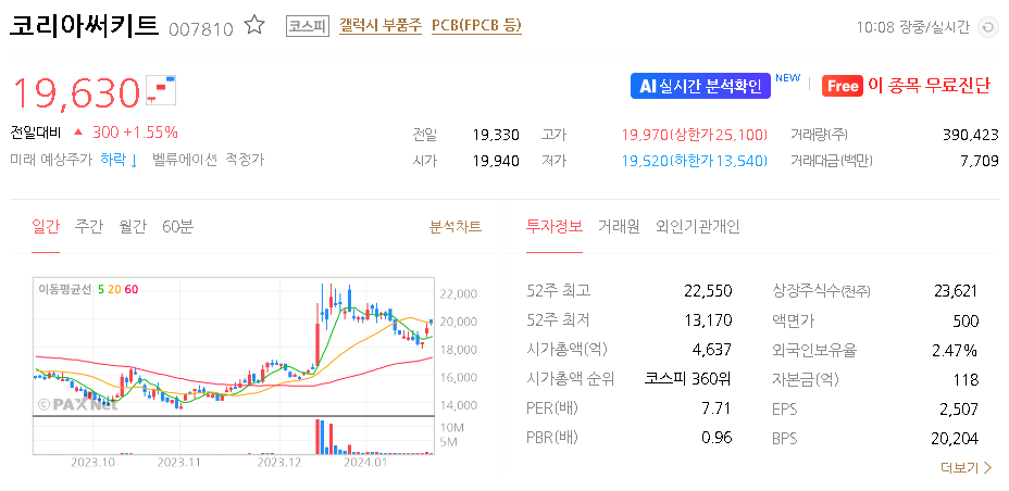 코리아써키트 주가 분석