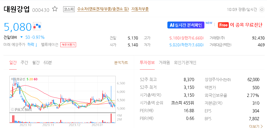 대원강업 주가 분석