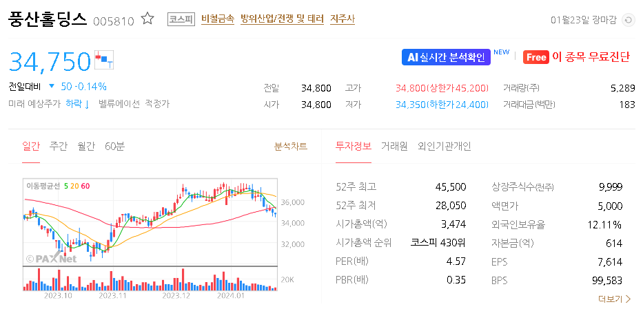 풍산홀딩스 주가 분석