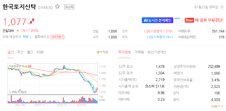 한국토지신탁 주식 결론