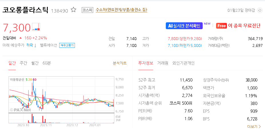 코오롱플라스틱 주가 분석