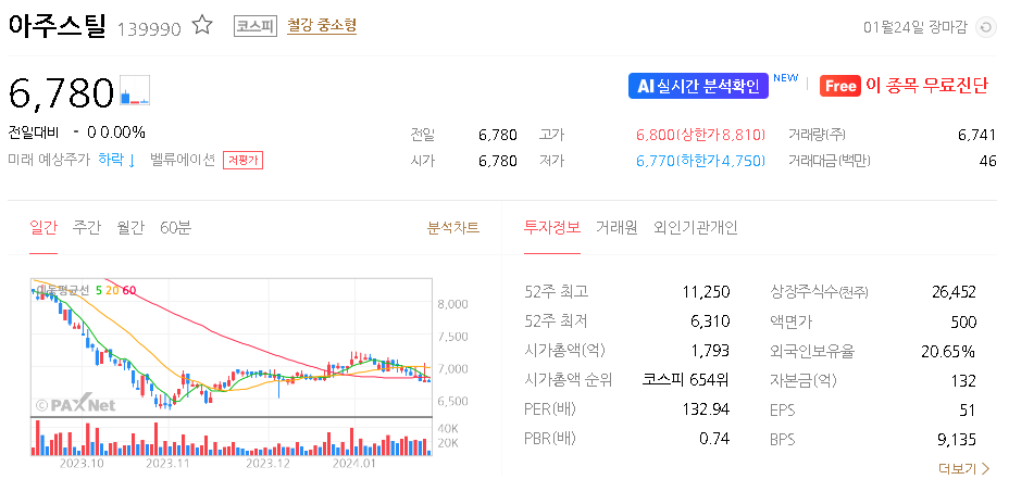 아주스틸 주가 분석